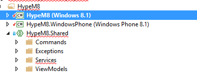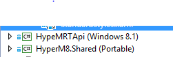 I mentioned earlier that I have a Windows 8.1 Class Library, which implements the HypeM Api. Now in the new SDK we have Universal App - Portable Class library. This is just a PCL which targets Win8.1 and WinPhone 8.1. So I can take advantage of this I needed to move all my stuff over to the new project type.
