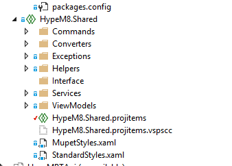Now that you’ve got this lovely shared section you can move over all the obvious bits that you want to share. To kick this off I moved over my Commands, Exceptions, Services and ViewModels.