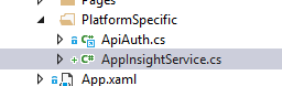 So I started a little platform specific folder in my Win 8 Project. Now containing app insights and ApiAuth, which uses the Credentials UI mentioned earlier.