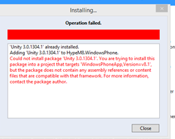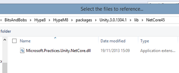 Then I had some fun sorting out some more references from the Windows Phone Side, I used Unity for my decency dependency injection and needed to get this up and running in the Phone Project. Again I saw issues with Nuget not playing nice with the new Project type.