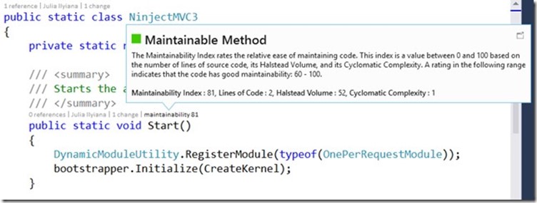CodeLens Code Health Indicator – Ever wondered if you made a method better or worse? This extension adds a live maintainability score to the codelens information so you can see it go up and down as you code!