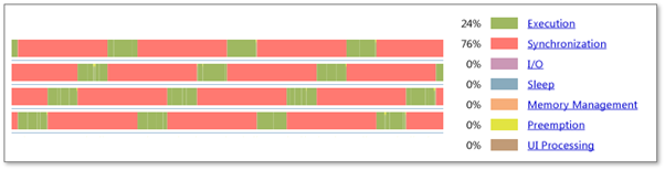 “The Concurrency Visualizer helps developers to visualize the behavior of a multithreaded application. This tool includes a gallery of common patterns for multithreaded applications that behave badly. The gallery includes typical and recognizable visual patterns that are exposed through the tool, together with an explanation of the behavior that is represented by each pattern, the likely result of that behavior, and the most common approach to resolve it. “http://msdn.microsoft.com/en-us/library/ee329530.aspx