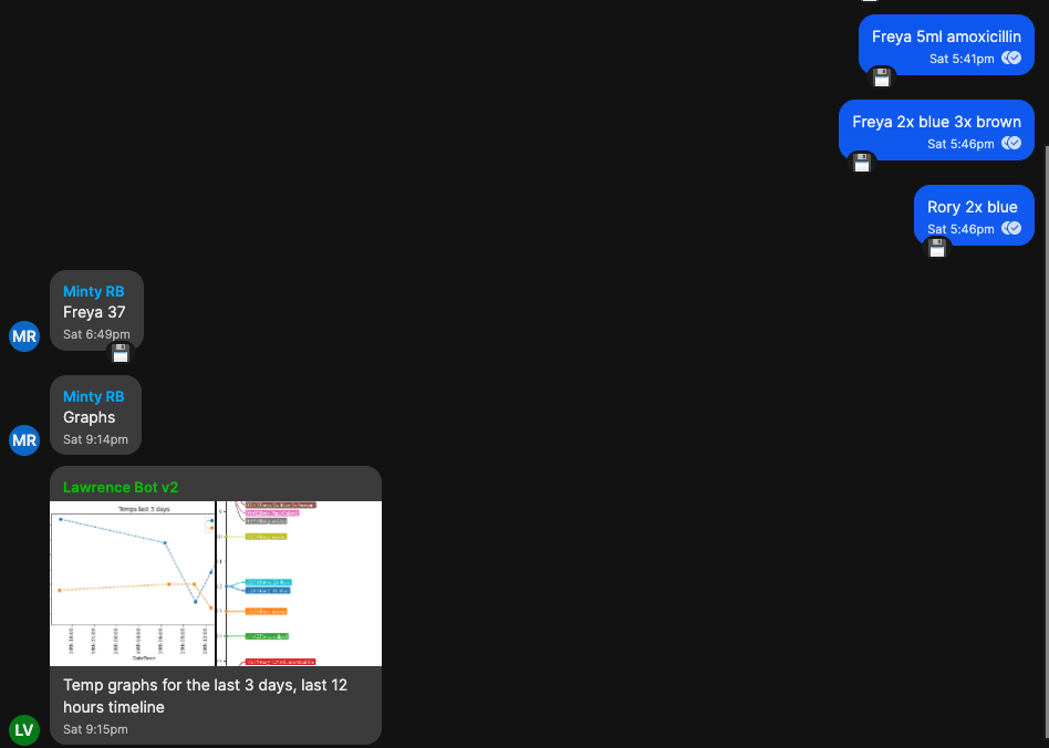 When you swap parents or see a new doctor you can do a quick rundown of what’s happened in the last x hours, chase up missed doses etc just by scrolling up the chat.